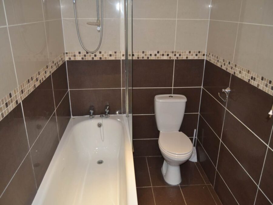 2 Bedroom apartment, has a fully tiled marble mosaic bathroom with fitted bath. Double leather bed, open plan fully integrated kitchen with chrome accessories, chrome halogen spotlighting, leather sofa and glass table.